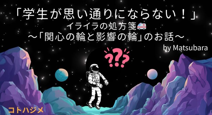 Contents1 「学生が思い通りにならない!」イライラの処方箋~「関心の輪と影響の輪」のお話~1.1 「学生を信じて」と言われると…1.2 寝るな!遅刻するな!そして嘘をつくな!1.3 何度も期待...
