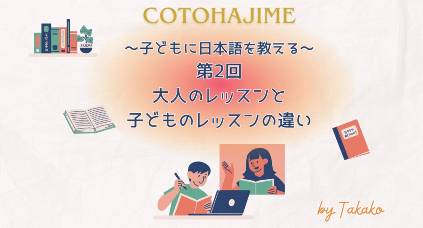 前回、第1回の記事では日本語レッスンの対象となるキッズやそのニーズ、そして日本語のキッズレッスンの現状についてお話ししました。今回はもう少し具体的に日本語の「大人のレッスン」と「子どものレッスン」の違いについて紹介していきたいと思います。